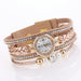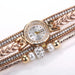 Duoya D249 Woven Twisted Pearls Round Analog Quartz Wrist Bracelet Watch For Women Beige