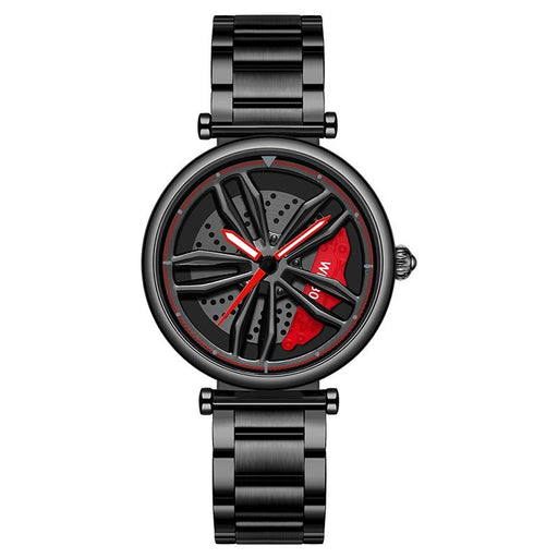1074 3D Hollow Out Wheel Non-Rotatable Dial Quartz Watch For Women Steel Belt