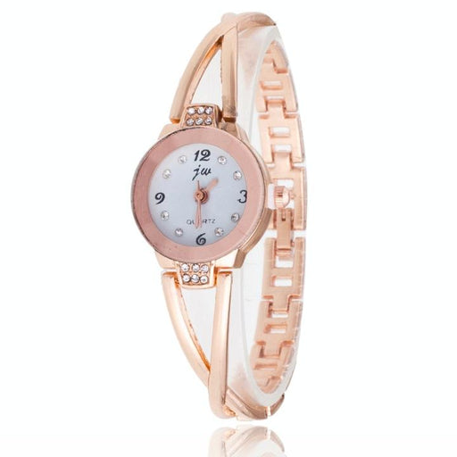 Women Rhinestone Gold Powder Pu Leather Strap Quartz Watch