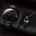 3 Piece Mens Fashion Watch Set Leather Band Quartz Movement