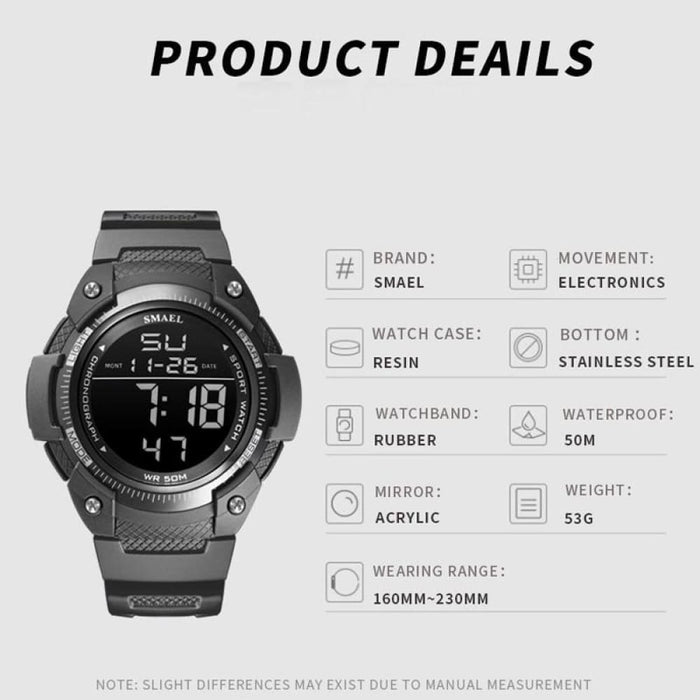 8 in 1 Waterproof Men’s Led Digital Wrist Watch