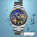 9194 Men Automatic Skeleton Mechanical Steel Band Watch Rose Gold