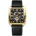 B6575 Men Vintage Square Multifunctional Luminous Quartz Watch Black Leather-Full Black-Black