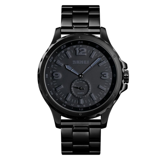 1513 Fashion Trendy Steel Band Quartz Men Waterproof Leisure Watch Black