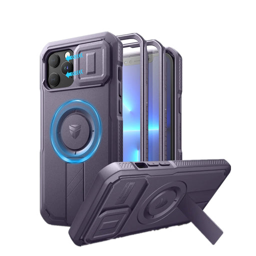 For Iphone 13 Pro Max Full Body Rugged Armor Shockproof Magnetic Case With Camera Case And Built-In Screen Protector Kickstand