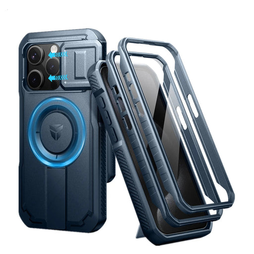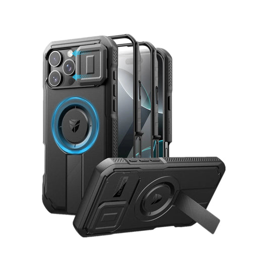 For Iphone 16 Pro Magsafe Rugged Armor Shockproof Case With Built-In Sliding Camera Case Built-In Screen Protector Holder