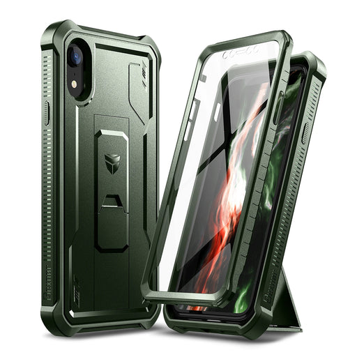 For Iphone Xr 6.1 Inch Full-Body Bumper Military Grade Armor Shockproof Case Kickstand With Built-In Screen Protector