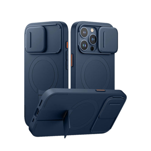 For Iphone 13 / 12 Pro Max Shockproof Bumper Slim Protective Case With Magnetic Camera Slide And Adjustable Kickstand