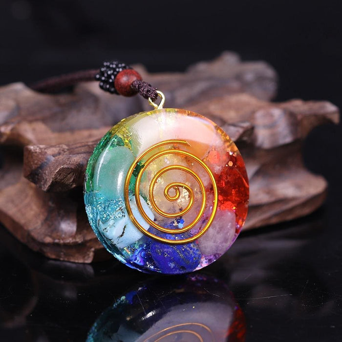 * 1 x Reversible Orgonite Mixed Chakra Orgone natural stone Pendant Revitalization Relaxation energy-enhancing Crystal necklace