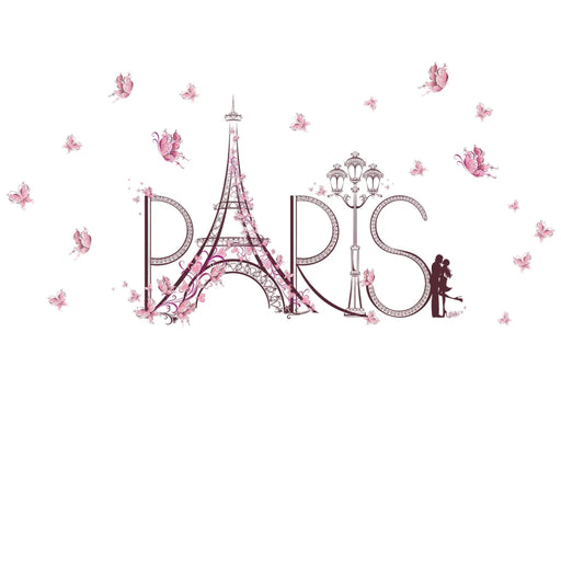 Eiffel Tower Couple Hug Wall Stickers Pink Butterflies For Living Room Bedroom Kids Home Decor