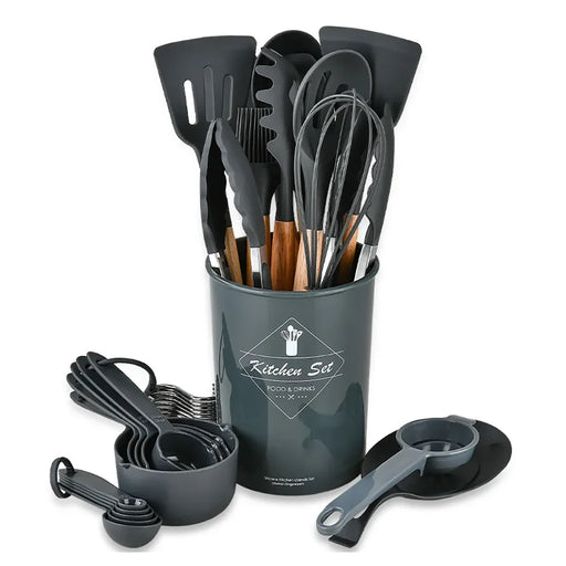 34 Piece Non Stick Silicone Kitchen Utensil Set With Wooden Handles