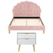 Double Bed Frame Scallop Headboard Pink Velvet With 2 Drawer Bedside Table