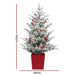 Christmas Tree 1M Led Potted Xmas Party Decor Red Barries Flocked