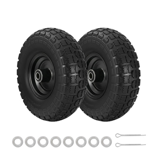 2pcs 4.10/3.50-4 Tire And Wheel Flat Free 26cm Solid Rubber Tires With 5/8 Axle Bore Hole And Double Sealed Bearings Perfect For Wheelbarrow Garden Cart Wagon Dolly