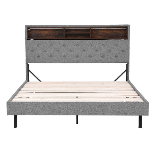 Bed Frame Queen Size Led Mattress Base Platform With Storage Shelf Hidden Storage Box Grey