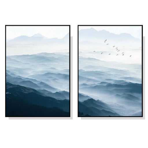 Wall Art 70Cmx100Cm Blue Mountains 2 Sets Black Frame Canvas