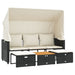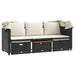 Garden Sofa 3-Seater With Canopy And Stools Black Poly Rattan Tlpapt