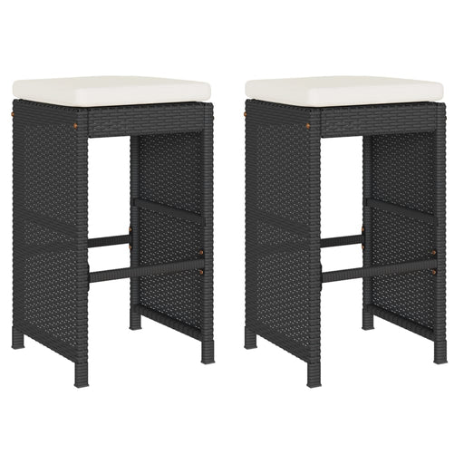 Garden Bar Stools with Cushions 2 Pcs Black Poly Rattan Gl68415