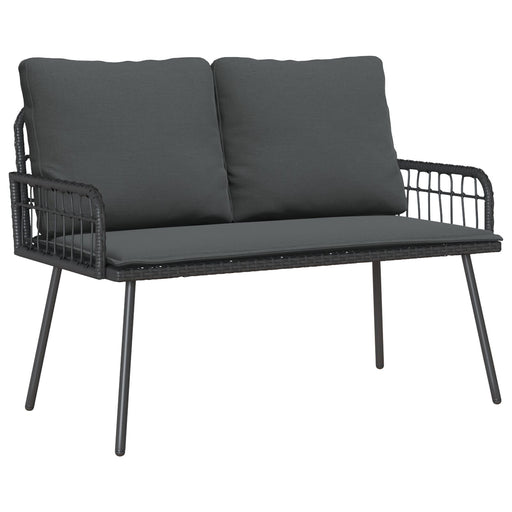 Garden Bench 2-Seater With Cushions And Table Black Poly Rattan Tlpatk