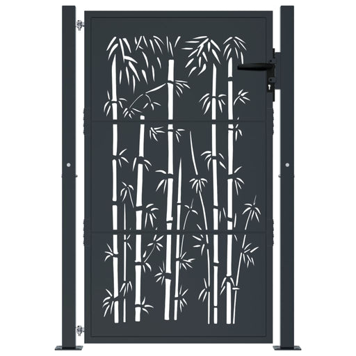 Garden Gate Anthracite 105X105 Cm Steel Bamboo Design Optoik