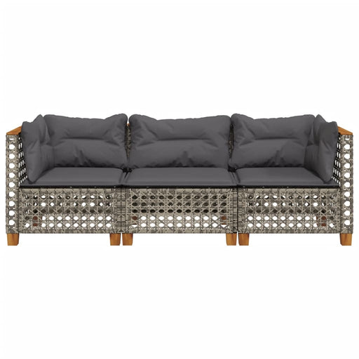 Garden Sofa With Cushions 3-Seater Grey Poly Rattan Tlpkon