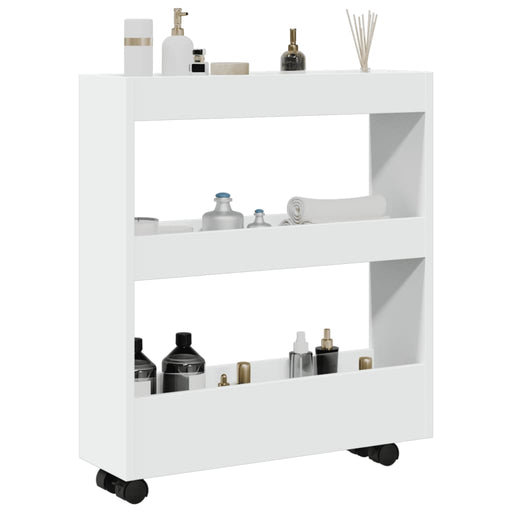 Narrow Storage Trolley 3 Tier White Engineered Wood Nppxao