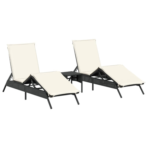 Sun Loungers 2 Pcs With Table Black Poly Rattan Abbxiob