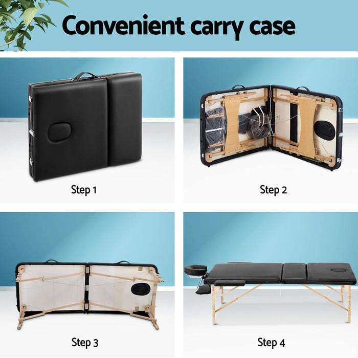 Zenses 75cm Wide Portable Wooden Massage Table 3 Fold Treatment Beauty Therapy