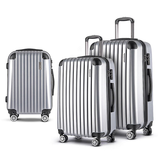 Wanderlite 3pc Luggage Travel Sets Suitcase Trolley Tsa Lock Silver