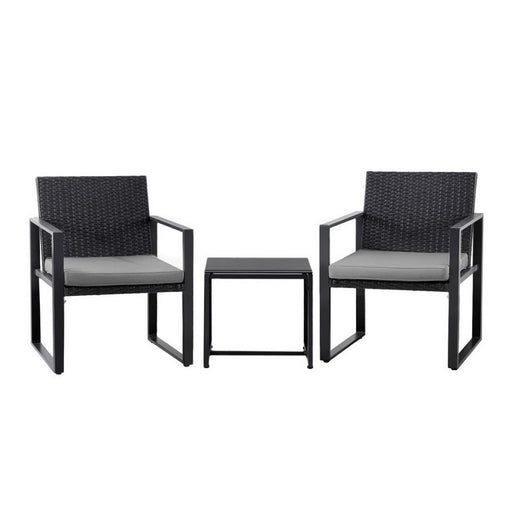 • 3Pc Outdoor Bistro Set Patio Furniture Wicker Dining Chairs Table Cushion Black