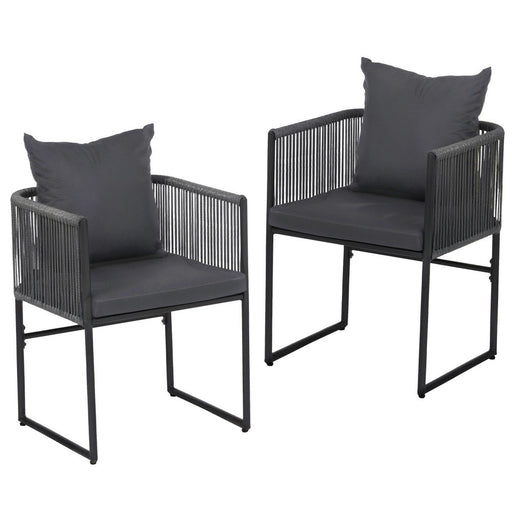 • 2Pc Outdoor Dining Chairs Woven Rope Chair Patio Furniture Garden Steel