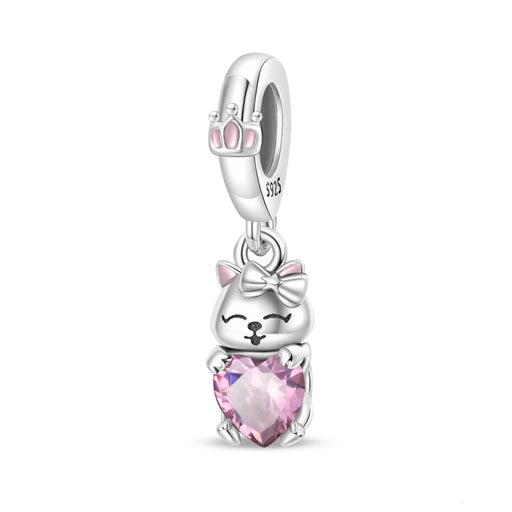• 925 Sterling Silver Pink Cat Charm Pendant For Women Bracelet Diy Gift