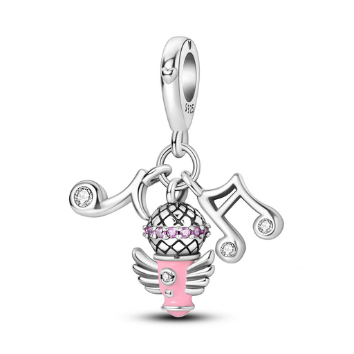 • 925 Sterling Silver Music Note Microphone Charm Fits Bracelet Diy Gift For Women