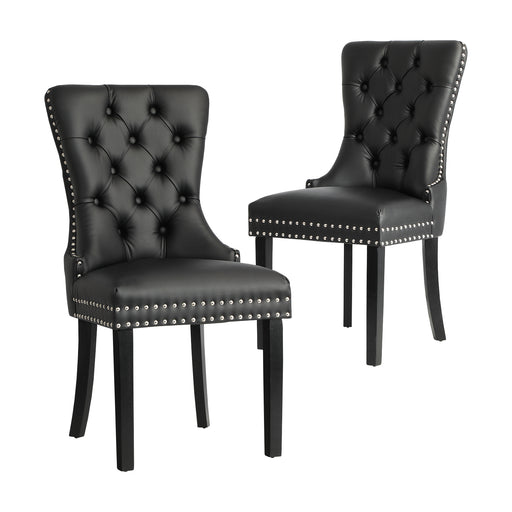 • 2 Pack Dining Chairs Upholstered French Provincial Tufted Pu Leather Black