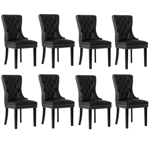 • 8 x Dining Chairs Upholstered French Provincial Tufted Pu Leather Black
