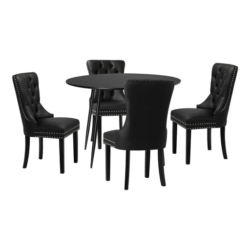 • 110Cm Round Dining Table With 4Pcs Dining Chairs Pu Leather Black