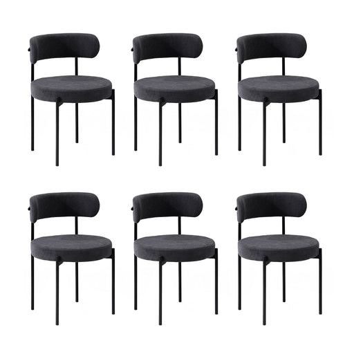 • 6X Dining Chair Round Boucle Kitchen Lounge Seats Backrest Dark Grey