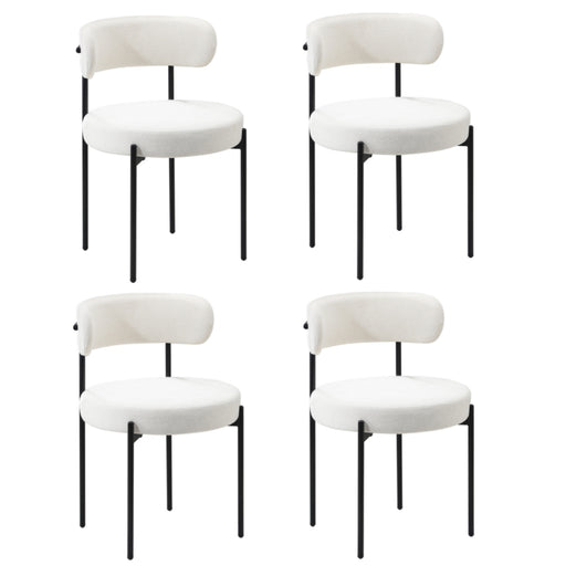 • 4X Dining Chair Round Boucle Kitchen Lounge Seats Backrest White