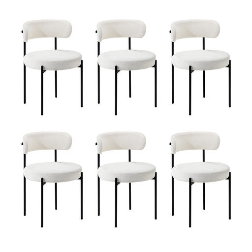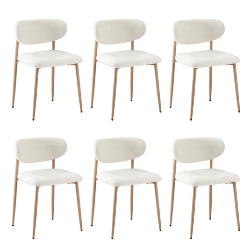 • 6X Dining Chair Round Boucle Kitchen Lounge Seats Backrest White