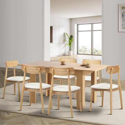 • 160Cm Extendable Dining Table With 6X Dining Chairs Pu Leather Natural