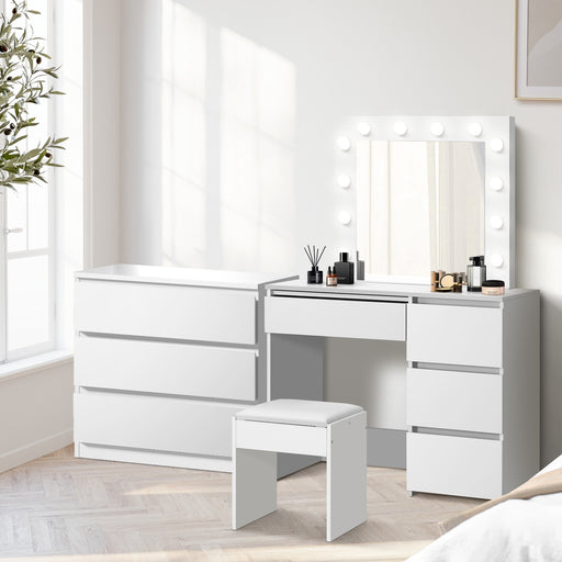 • Dressing Table Stool Set Makeup Mirror Desk 7 Drawers Led White