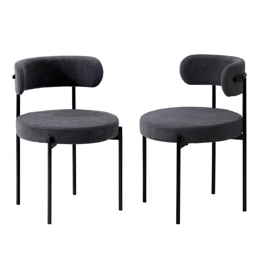 • 2X Dining Chair Round Boucle Kitchen Lounge Seats Backrest Dark Grey