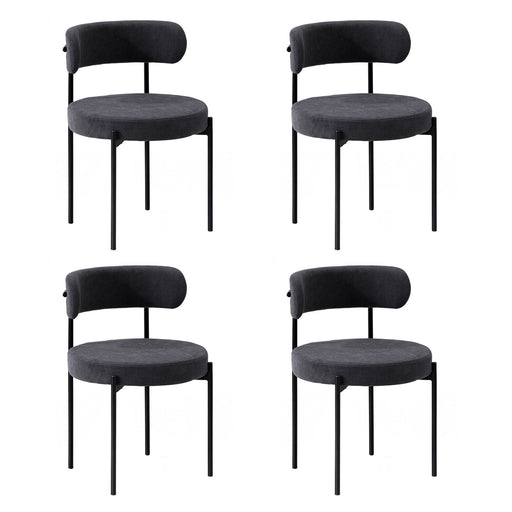 • 4X Dining Chair Round Boucle Kitchen Lounge Seats Backrest Dark Grey