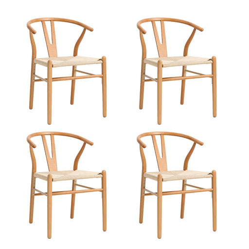 • Set Of 4 Wooden Dining Chair Cafe Lounge Seat Wishbone Shaped Chair