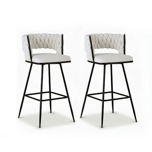 • 2X Bar Stools Kitchen Dining Chair Counter Stool Woven Velvet Metal Ivory