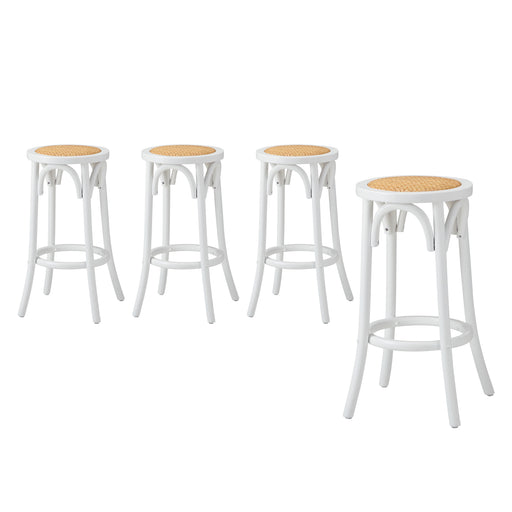 • Set Of 4 Bar Stools Kitchen Vintage Dining Chair Rattan Seat White
