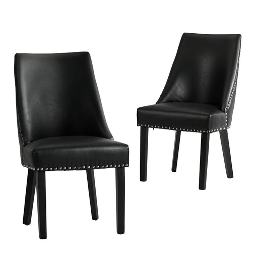 • 2Pcs Pu Leather Dining Chair Kitchen Padded Seat Winglet Design Black