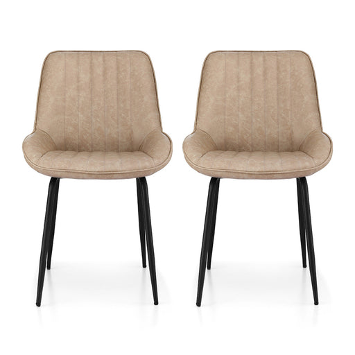 • 2X Dining Chairs Retro Pu Leather Kitchen Lounge Cafe Accent Chair Khaki