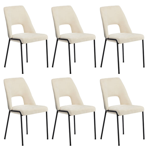 • Set Of 6 Dining Chairs Chenille Fabric Kitchen Chair Padded Seat Beige