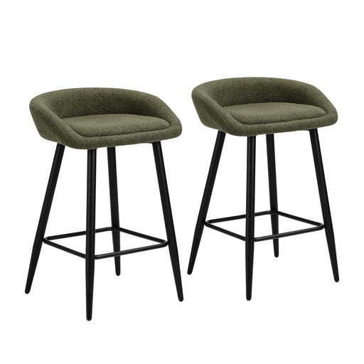 • Bar Stools Set Of 2 Kitchen Dining Chairs Counter Stools Green Boucle